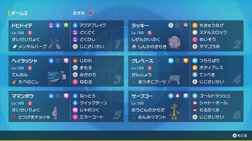 パターン1 ①強い人の構築を丸パクリします。以上 パターン2①環境で明らかに強そうなポケモンをピックアップします。②できるだけ幅広く戦えそうな基本選出に組み込める2体を決めます。(→結果的に特殊受けのラッキー、物理受けのヘイラッシャになる)③基本選出…