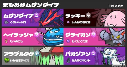 こんにちはエモルガです。S26お疲れ様でした。良い感じの構築ができたので書いていきます。 個体紹介 ムゲンダイナ@くろいヘドロ(どく) ラッキー@しんかのきせき(あく) ヘイラッシャ@たべのこし(フェアリー) グライオン@どくどくだま(フェアリー) アラブルタ…