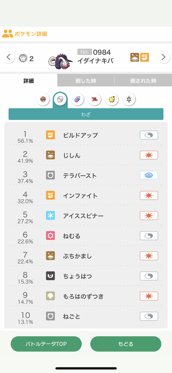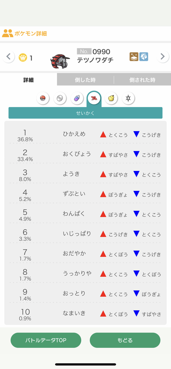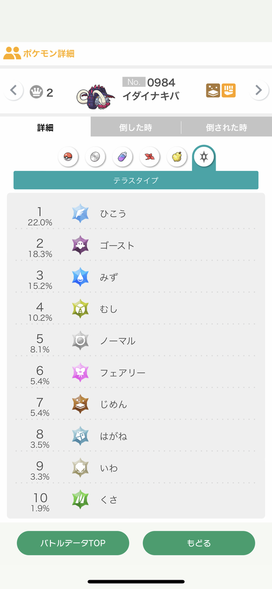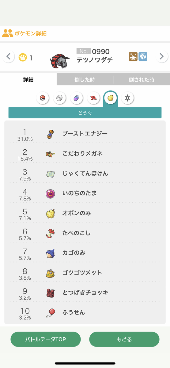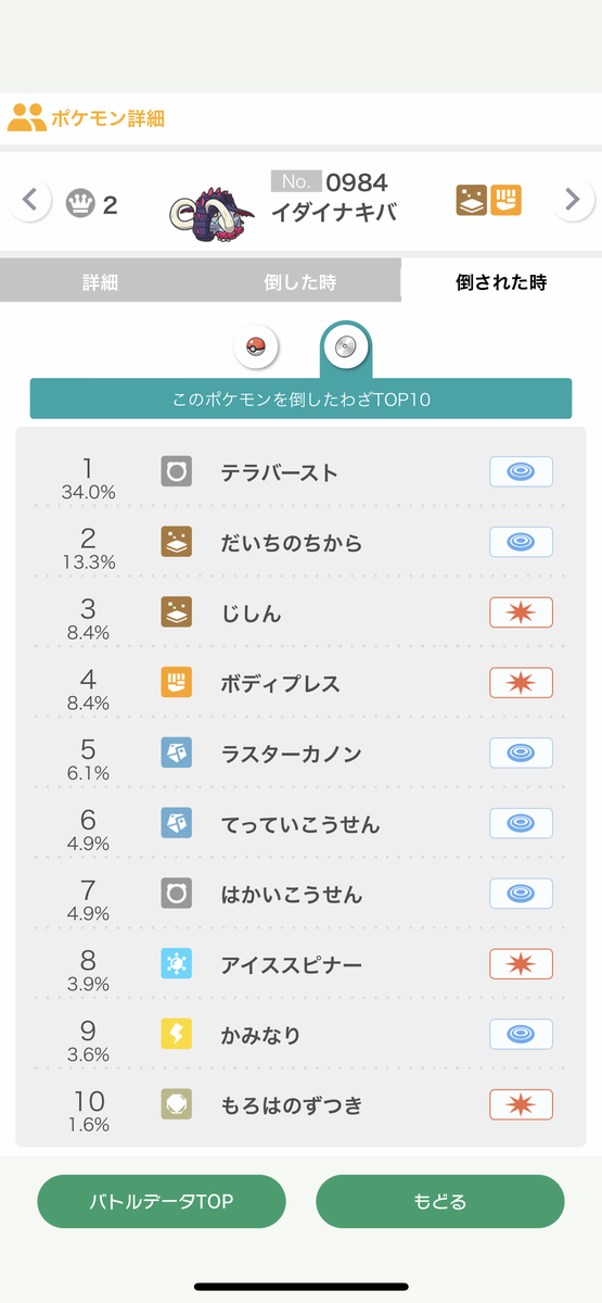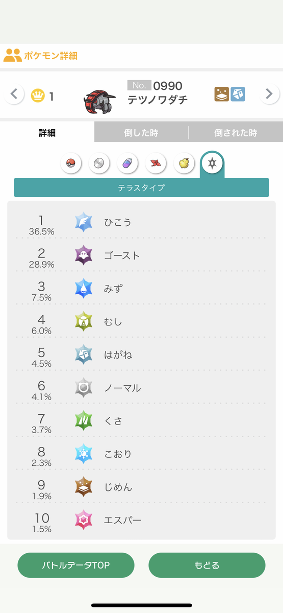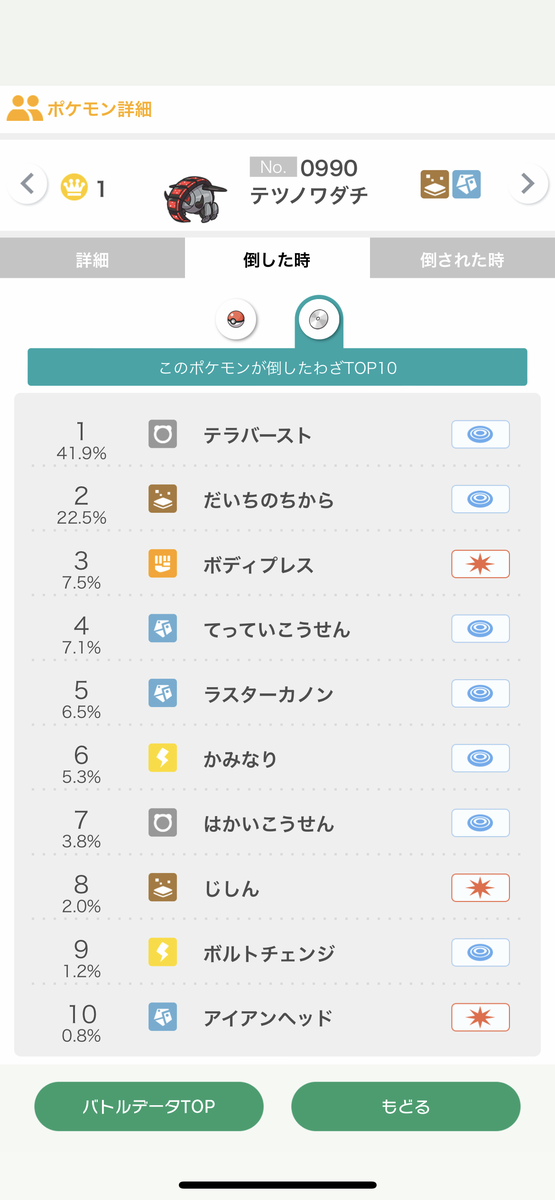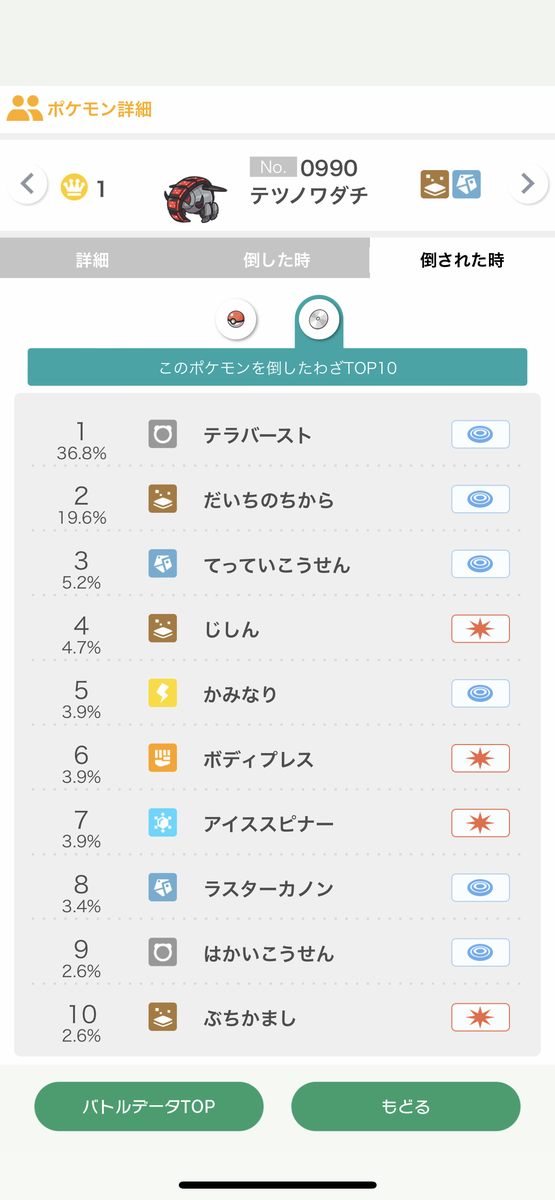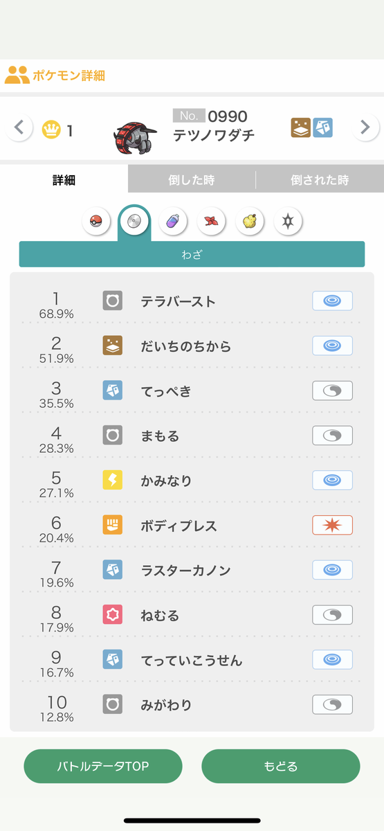 1位→テツノワダチ@エナジー、最速飛行テラス特殊型(まもる/てっぺき/テラバ/だいち)