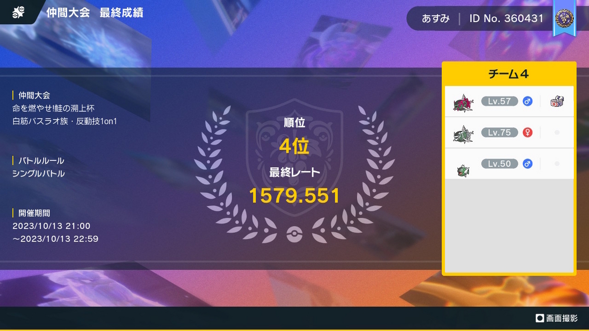 ・再戦した人が、イダイトウオスを打ち分け可能なアタッカーにしてイダイトウメスをタスキ岩テラス型にして役割を分けていた。とても勉強になった。