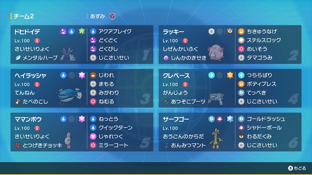 選出パターンはドヒドラキラッシャ3戦3勝、ドヒドラキクレベ2戦2勝、サーフゴーラキラッシャ3戦2勝でした。結局ママンボウ出さなかったです。一度回線切れが起こってしまいました。すみません。あと相手側の回線切れが一度あって勝ってしまいました。なので8戦しかしてないです😨サーフゴーラッキーヘイラッシャの選出が多くなったのはキョジオーンの影響なのですが、基本選出の安定感が高くて良かったです。